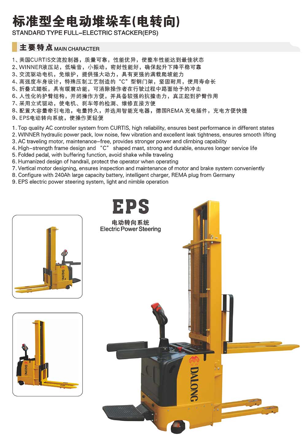 無錫大隆電工機(jī)械有限公司主營電動叉車,手動搬運車,電動堆垛車,電動搬運車等,規(guī)格達(dá)上百種,多次通過國家質(zhì)量技術(shù)監(jiān)督部門的質(zhì)量鑒定,信譽高,值得選購!